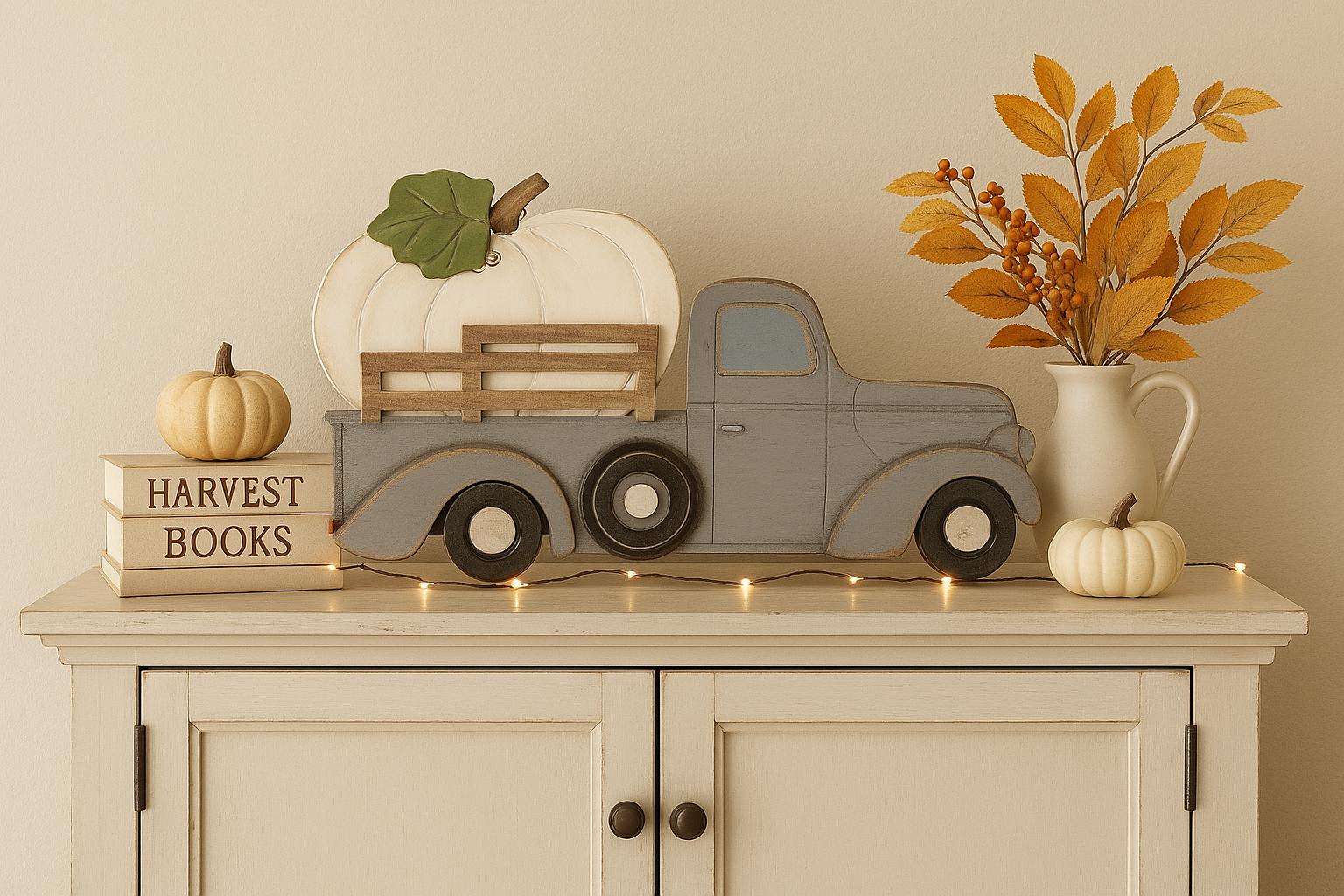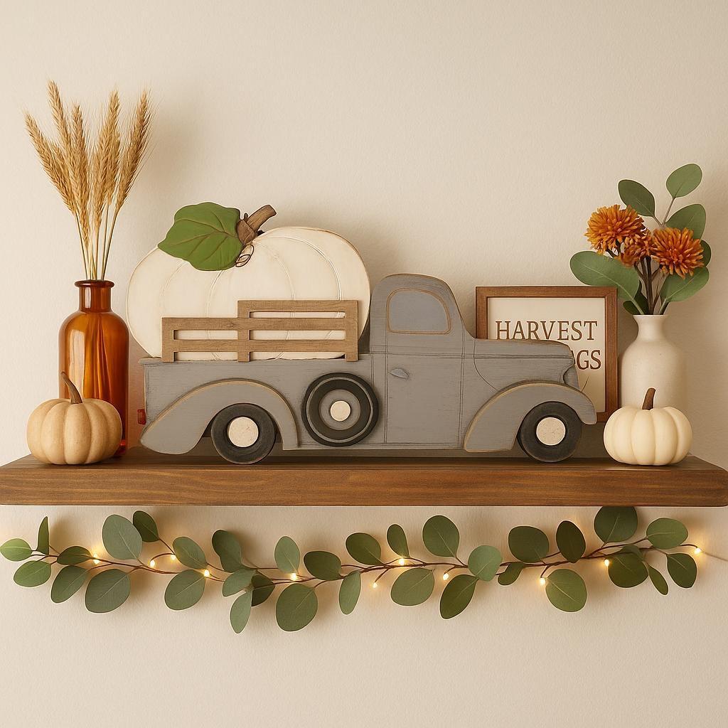 Fall Truck Wall Decor: Autumn Shelf Decoration (18x11in