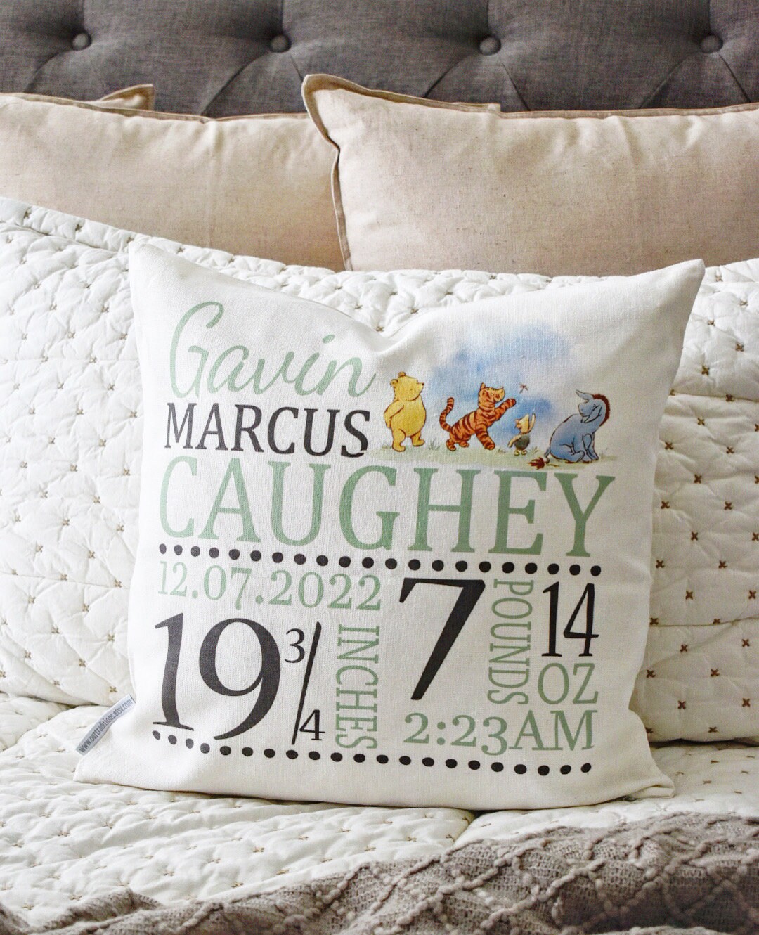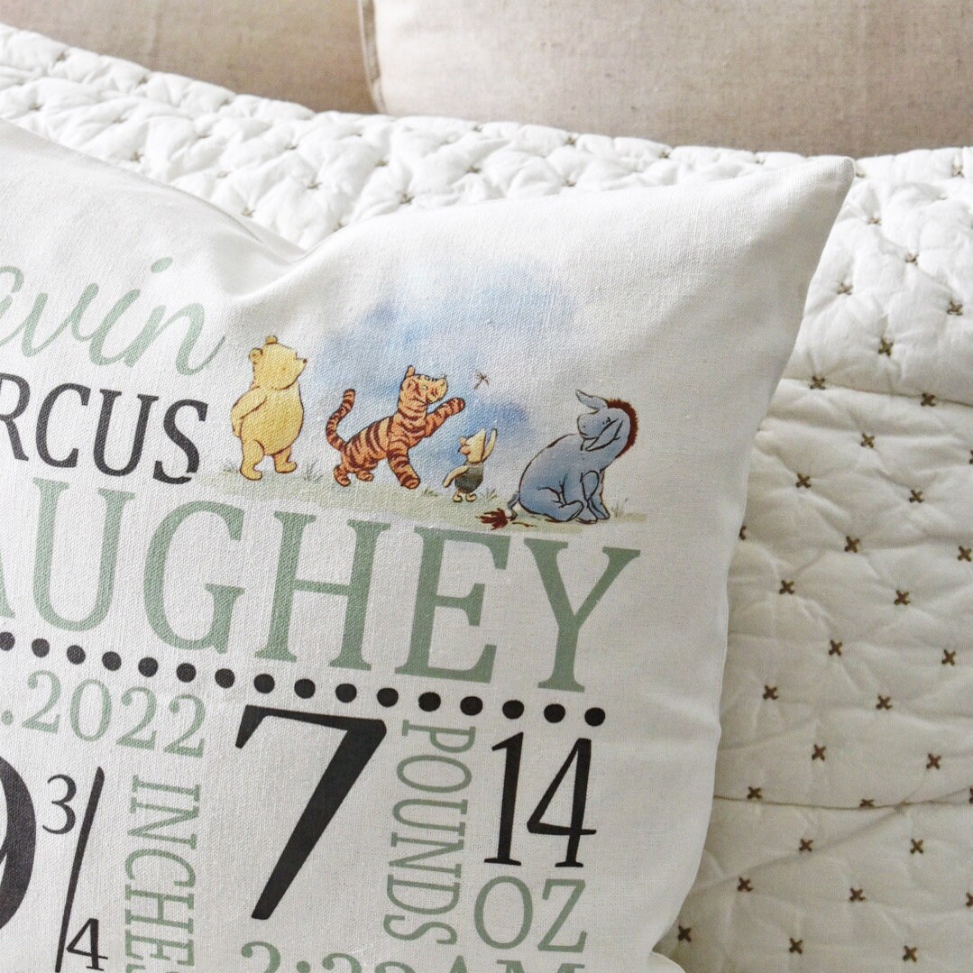 Personalized Winnie the Pooh Birth Stats Pillow Cover
