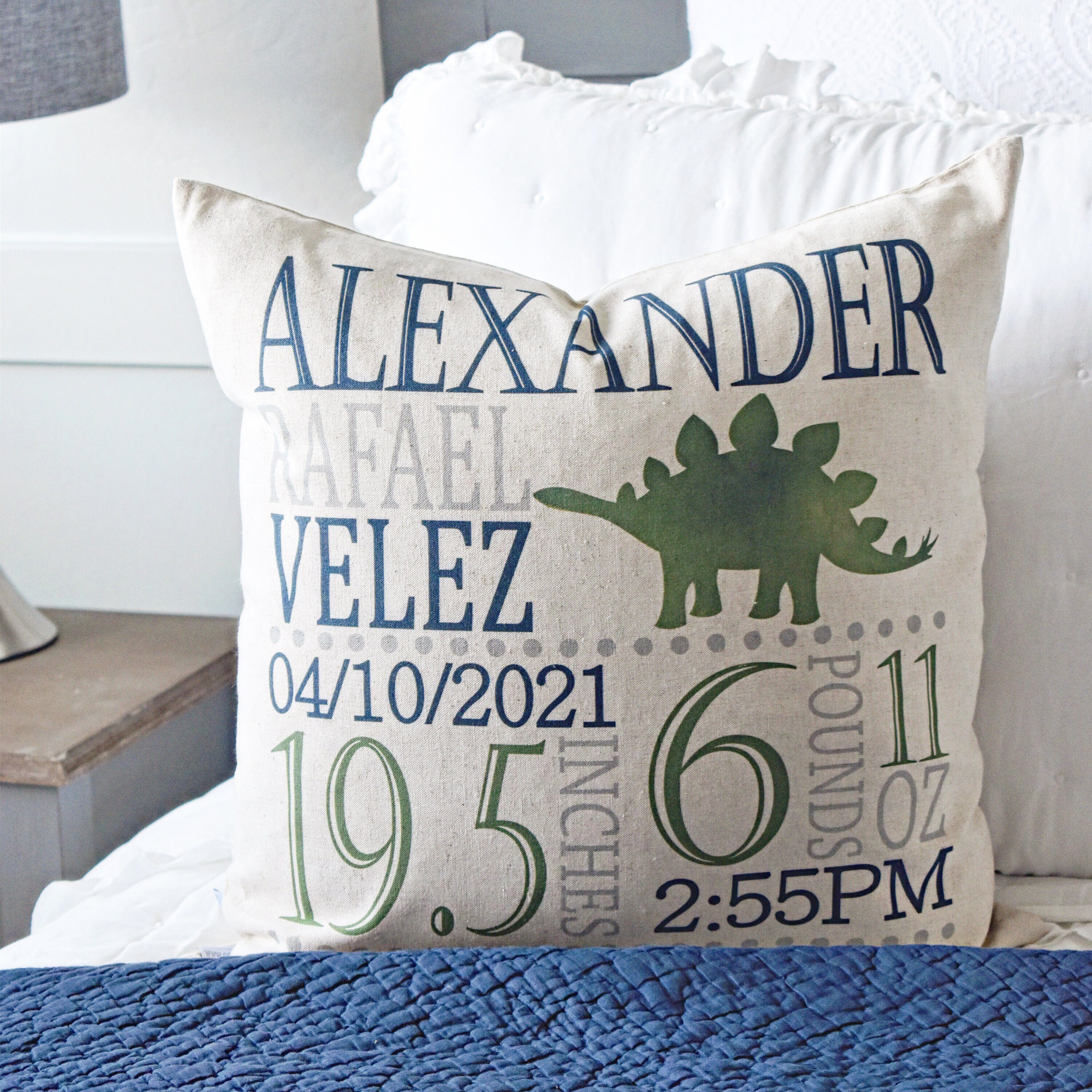 Personalized Dinosaur Birth Announcement Pillow Cover