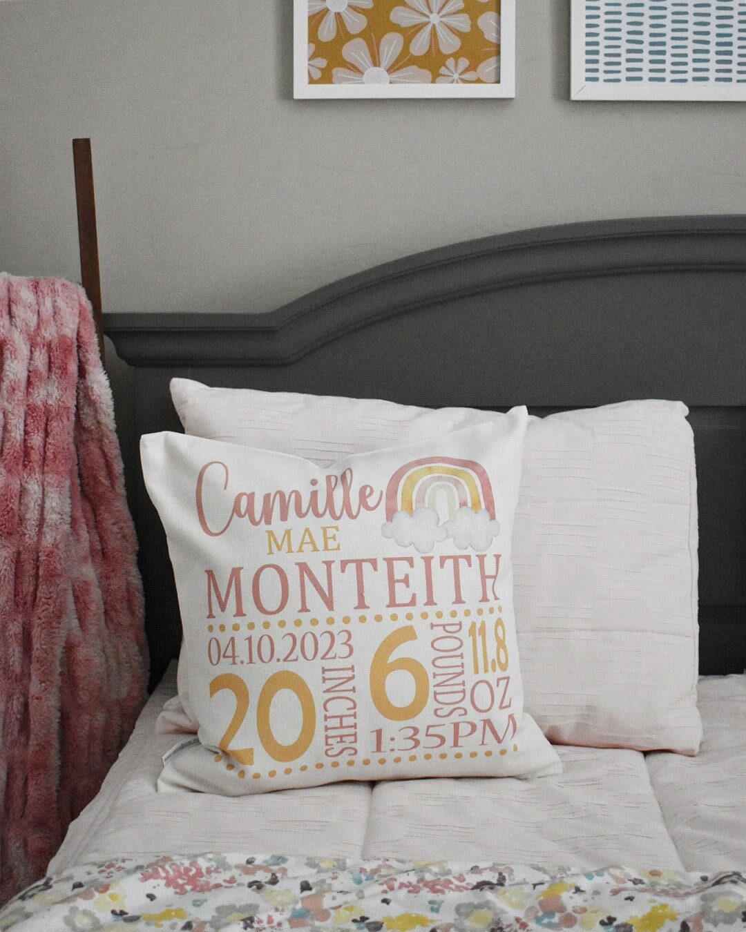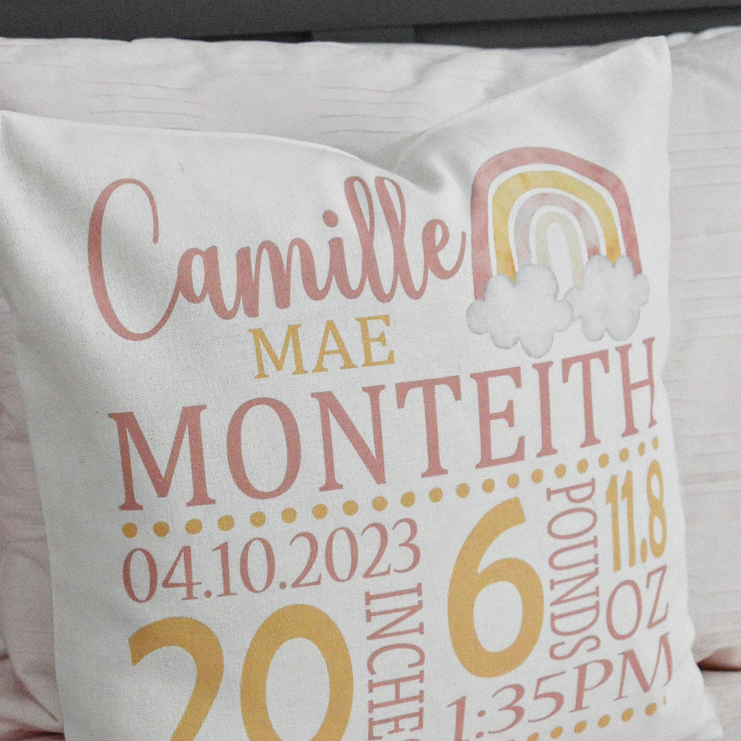 Personalized Rainbow Birth Announcement Pillow Cover